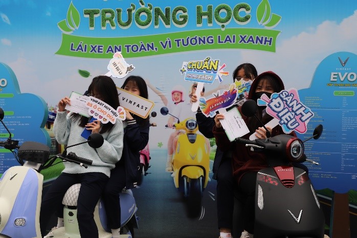Trong khuôn khổ chương trình, học sinh được tham gia các phần thi trải nghiệm hướng dẫn lái xe an toàn, thực hành kỹ năng điều khiển xe máy điện và kiểm tra, sử dụng mũ bảo hiểm đạt chuẩn.